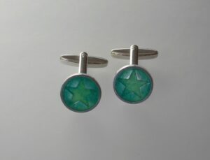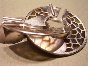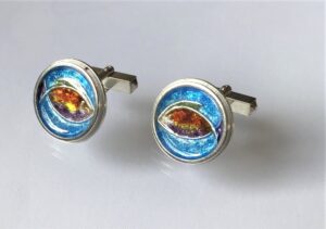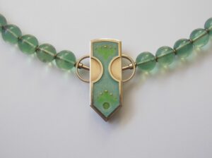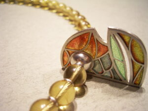 925/000 Silber, Feuervergoldung, Fensteremail, Spektrolith