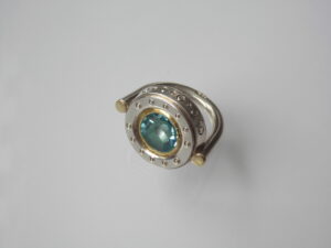 925/000 Silber, 750/000 Gold, Topas blau