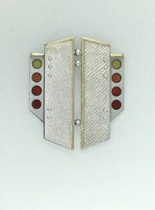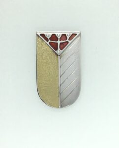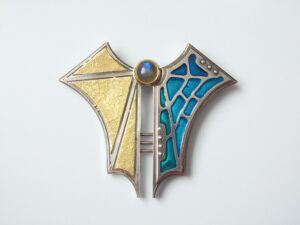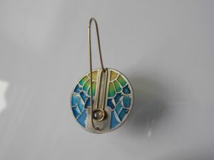 925/000 Silber rhodiniert, 750/000 Gold, Fensteremail