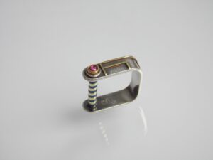9250/000 Silber, 750/ooo Gold, Rhodolith, Fensteremail