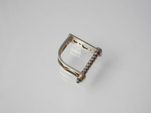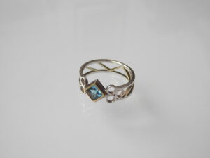 Skelettring, 925/000 Silber, 585/000 Gold, blauer Topas