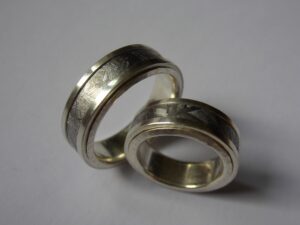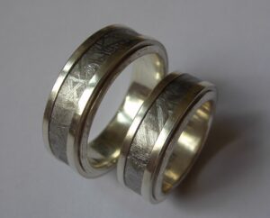 Eheringe: 925/000 Silber, Einlage Meteoriteneisen